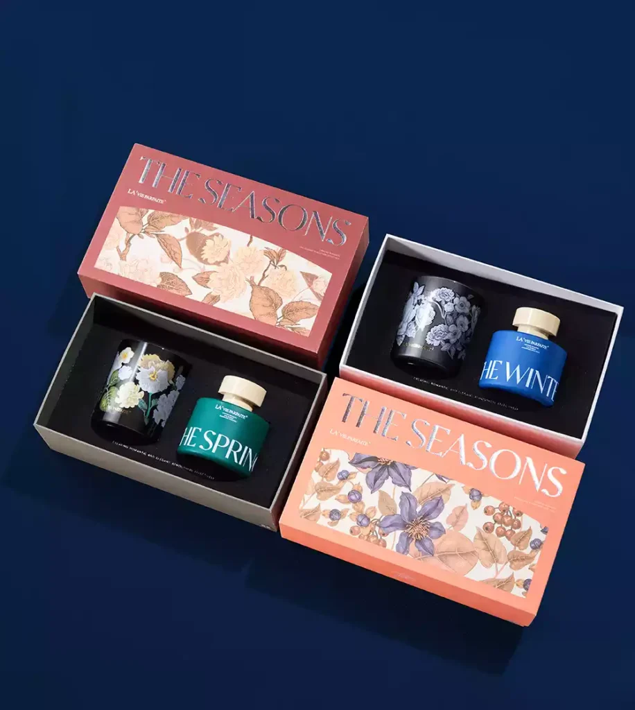 A Seasonal Journey: Enjoy four distinct scents that take you on a trip through nature’s best aromas, from fresh spring blooms to cozy winter warmth.